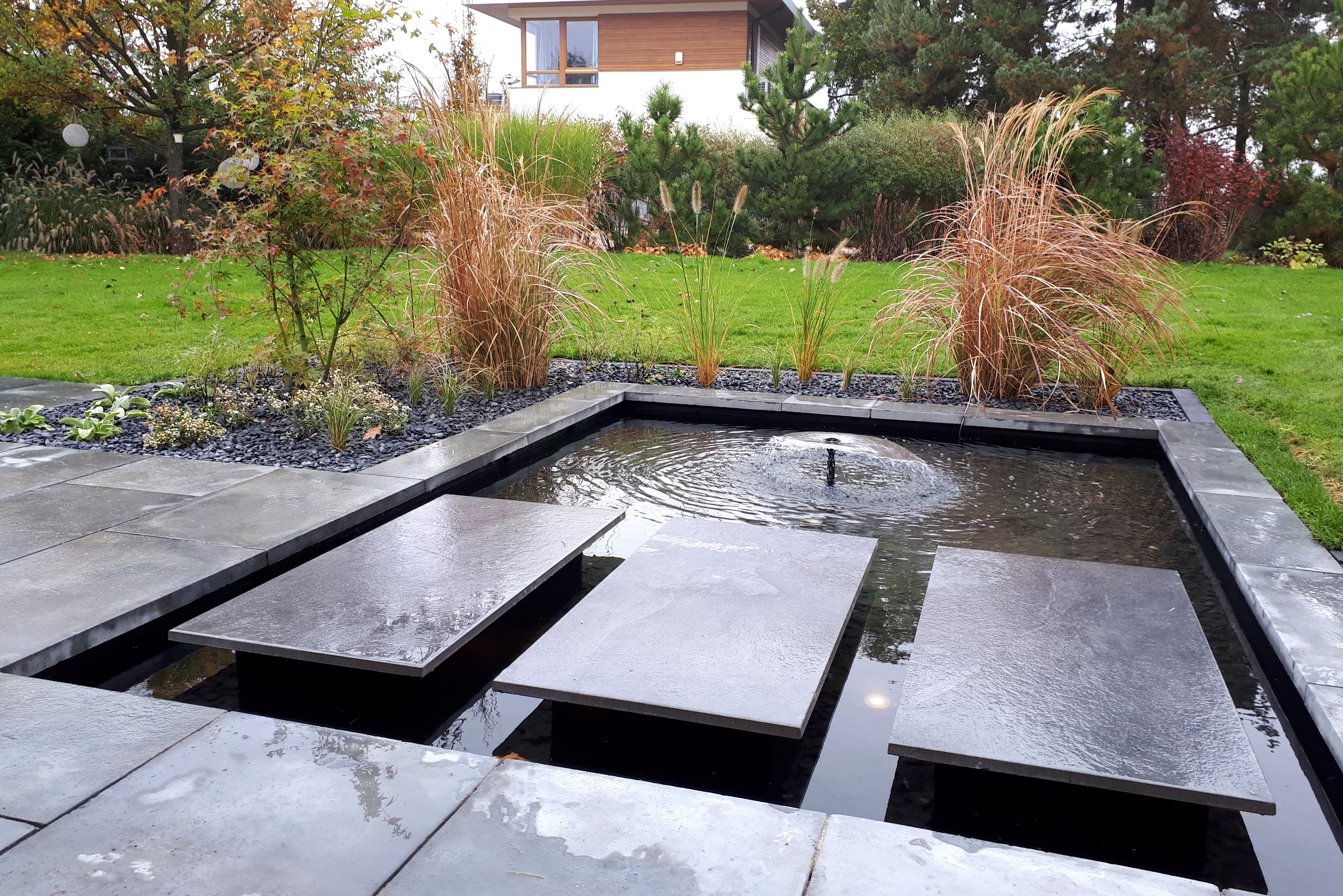 projekt koncepcyjny i projekt wykonawczy tarasu i zbiornika ozdobnego, re-aranżacja systemu nawodnienia i oświetlenia, kompleksowa realizacja