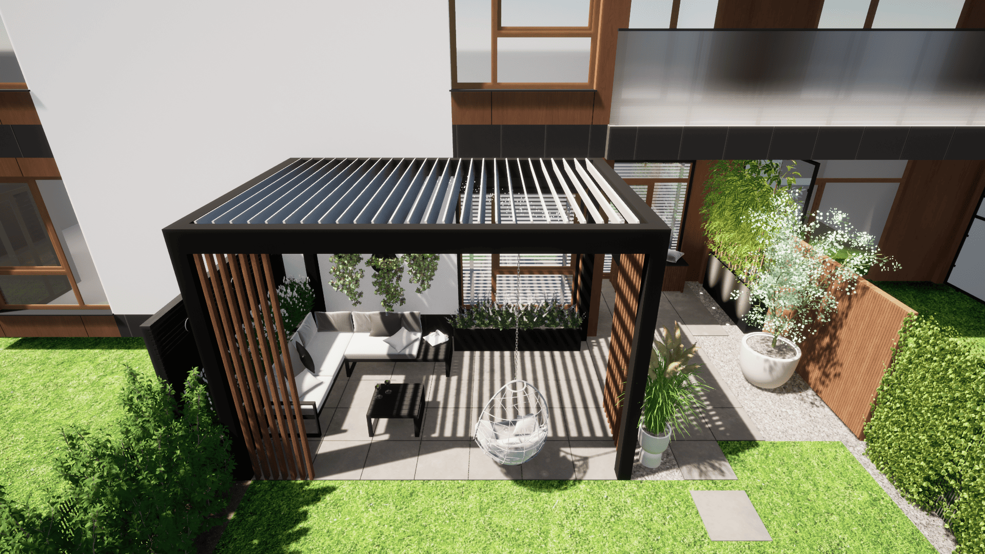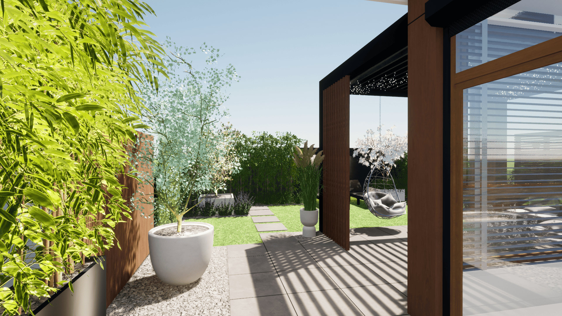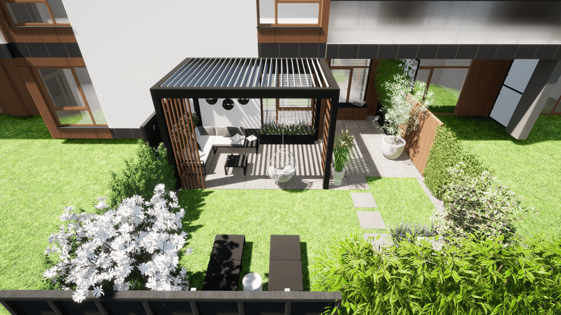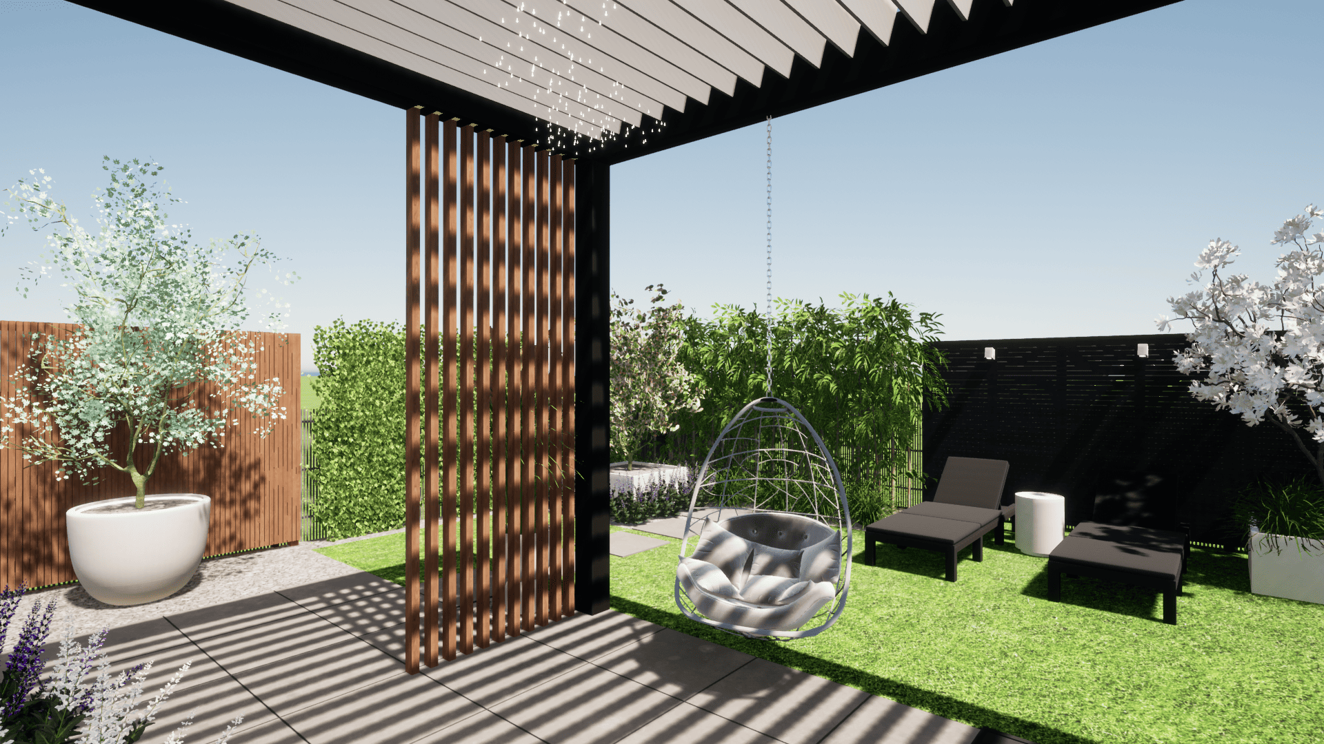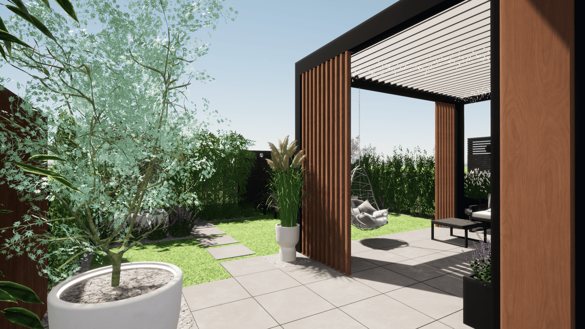 projekt koncepcyjny, projekt nawierzchni: tarasu, ścieżki, projekt pergoli, małej architektury, projekt oświetlenia,