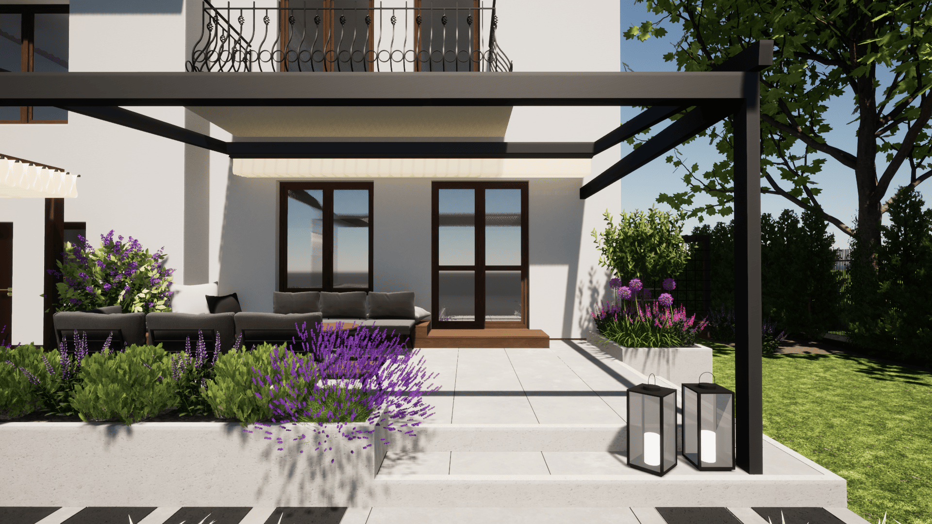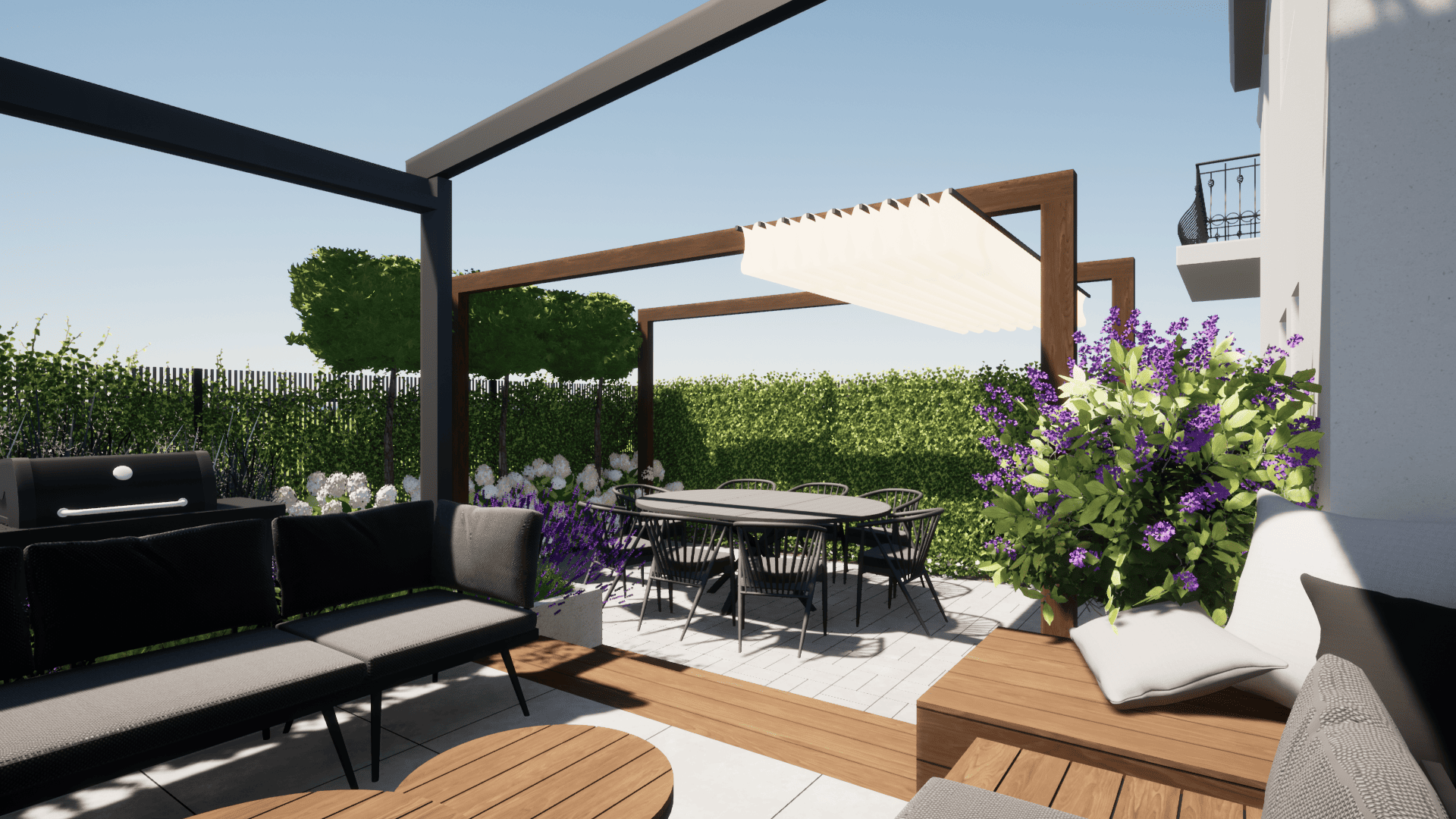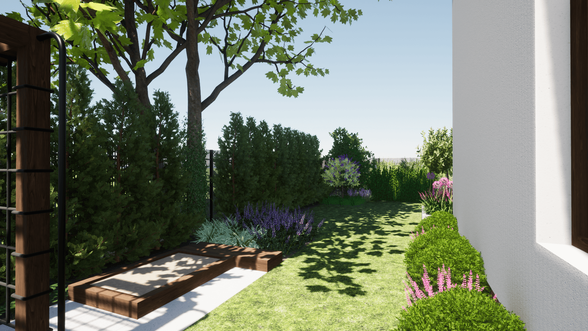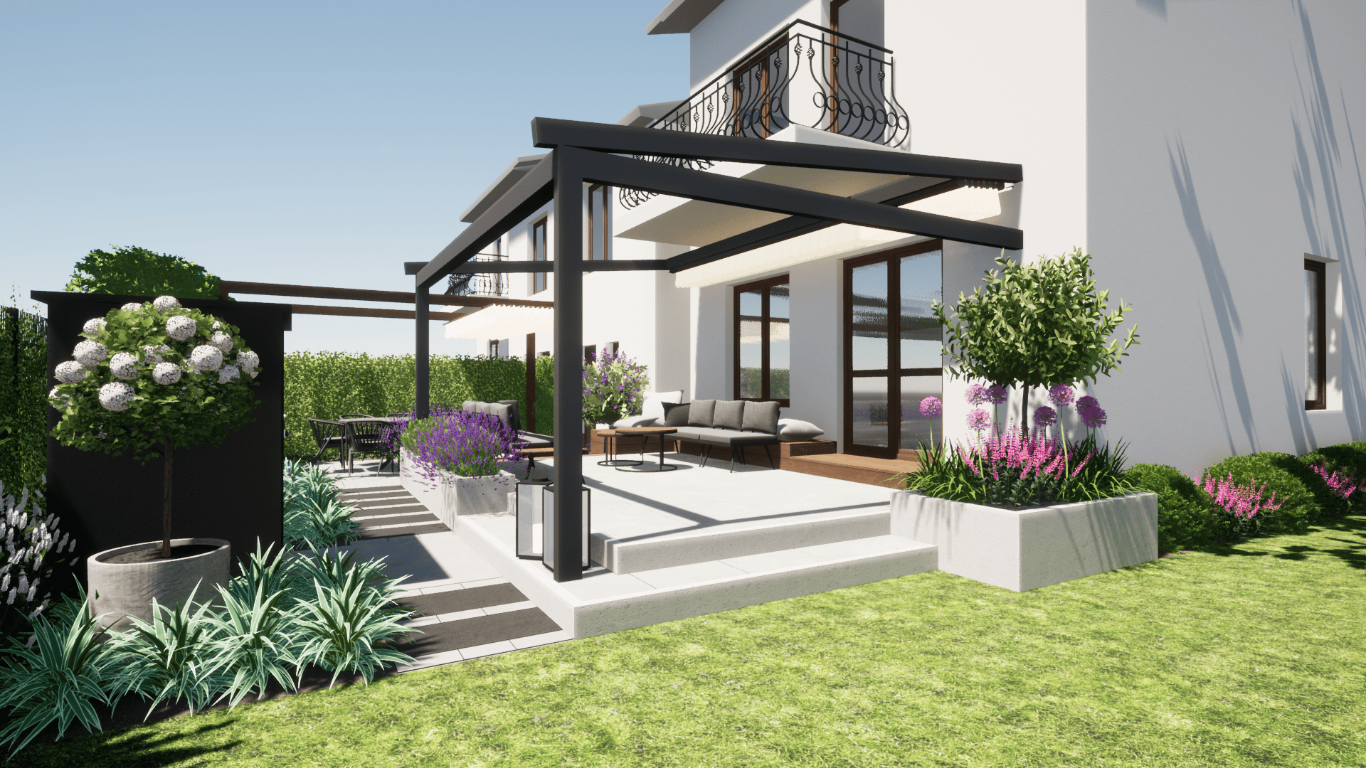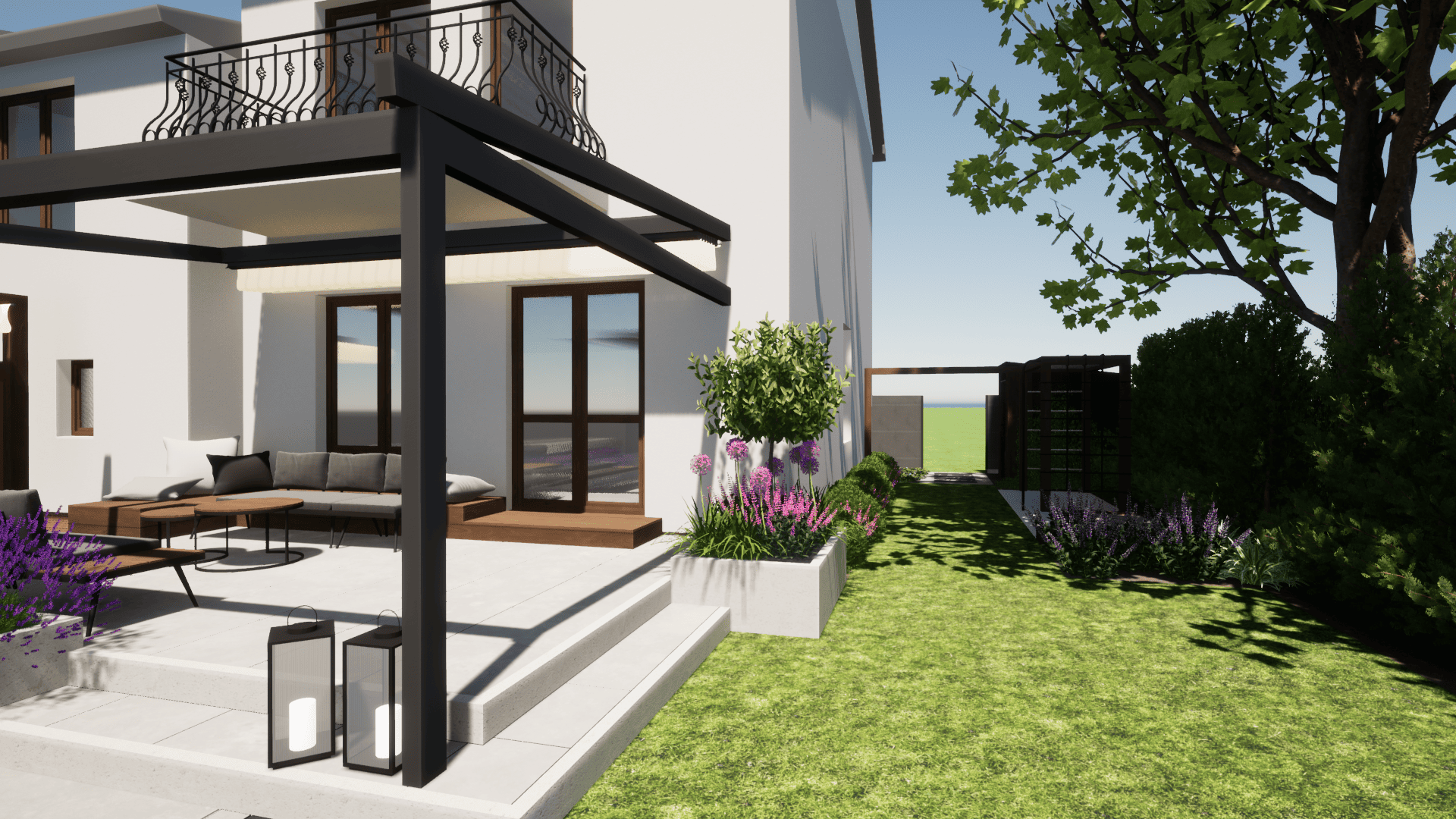 projekt koncepcyjny, projekt nawierzchni: tarasu, ścieżek, projekt pergoli, małej architektury, projekt oświetlenia, projekt systemu nawodnienia