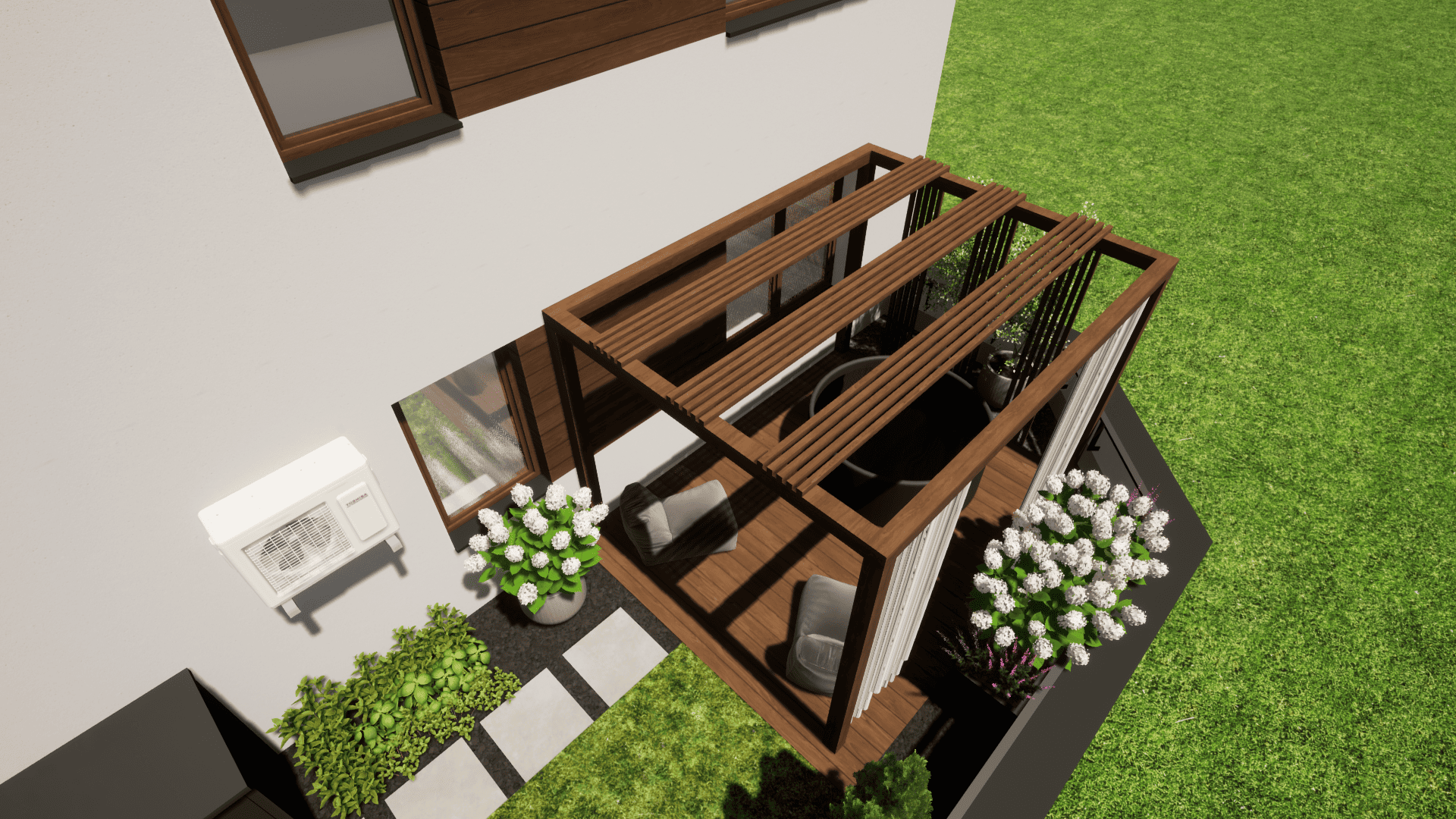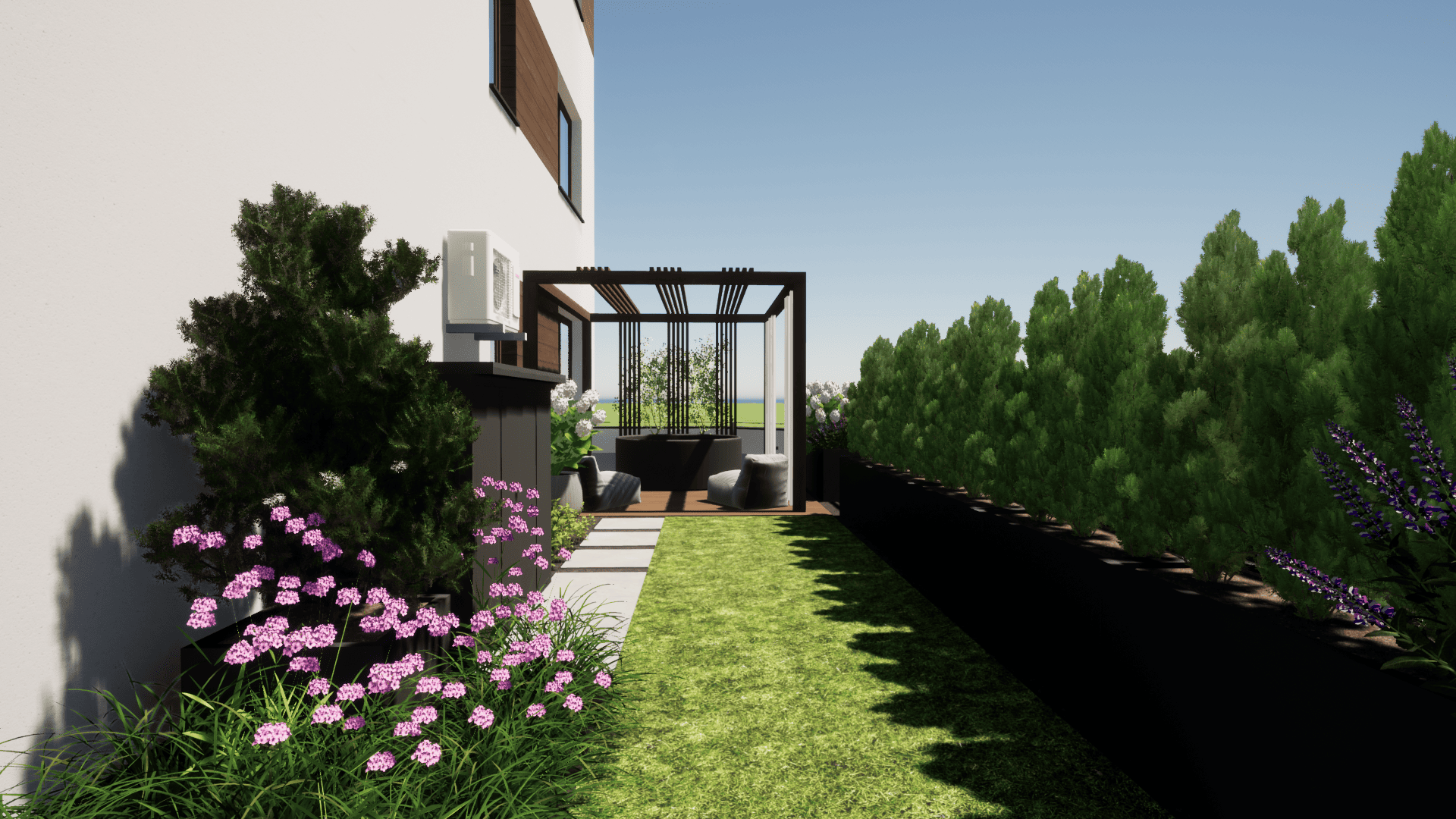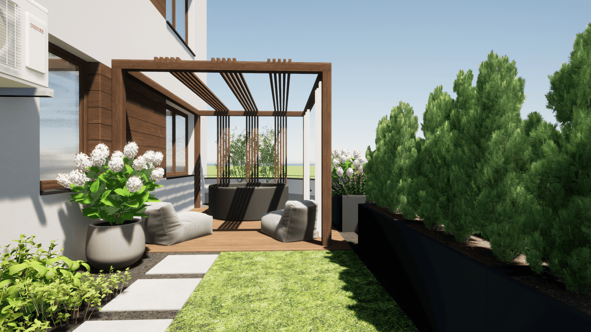 projekt koncepcyjny, projekt nawierzchni: tarasu, ścieżki, projekt pergoli, małej architektury,